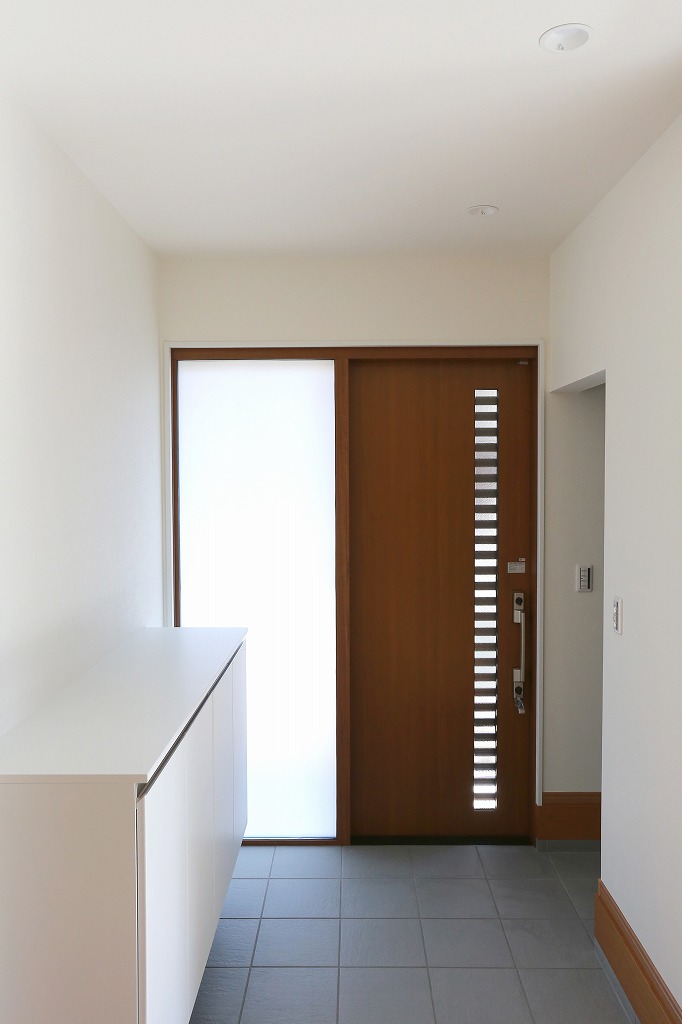 ガラススペースを増やしたことで日中でも玄関ホールを明るくしてくれます。