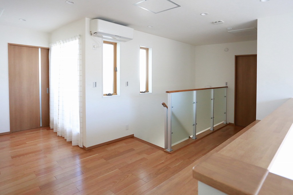 2階ホール部分子供達には、両親、祖父母を感じながら勉強でき、日中には山の風景も伺える休日のリラックススペースとして